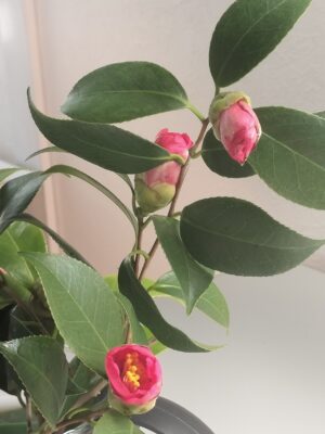 利用メンバーさんが、自宅で育てている 椿の花を持ってきてくださいました。