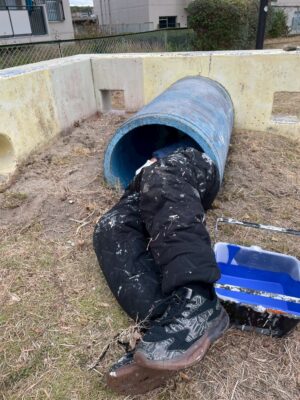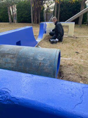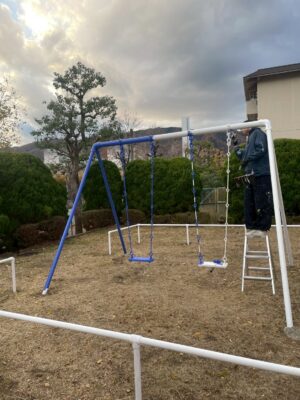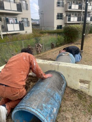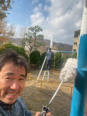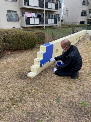 ペイントの準備を進めている公園があります。