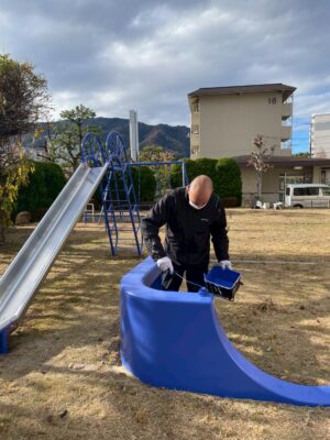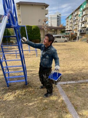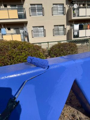 宇宙公園下塗り作業の続きです… 青色の塗料を塗り重ねていきます!!